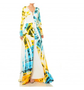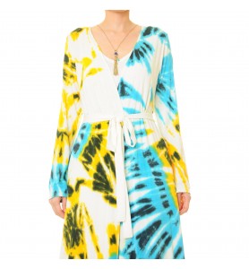 Wash in cold water on a gentle cycle or machine wash in a laundry bag (gentle cycle). Wash separately from light colors. Hang to dry in the shade. Iron on a low heat inside out, avoiding prolonged soaking to preserve the tie-dye effect.